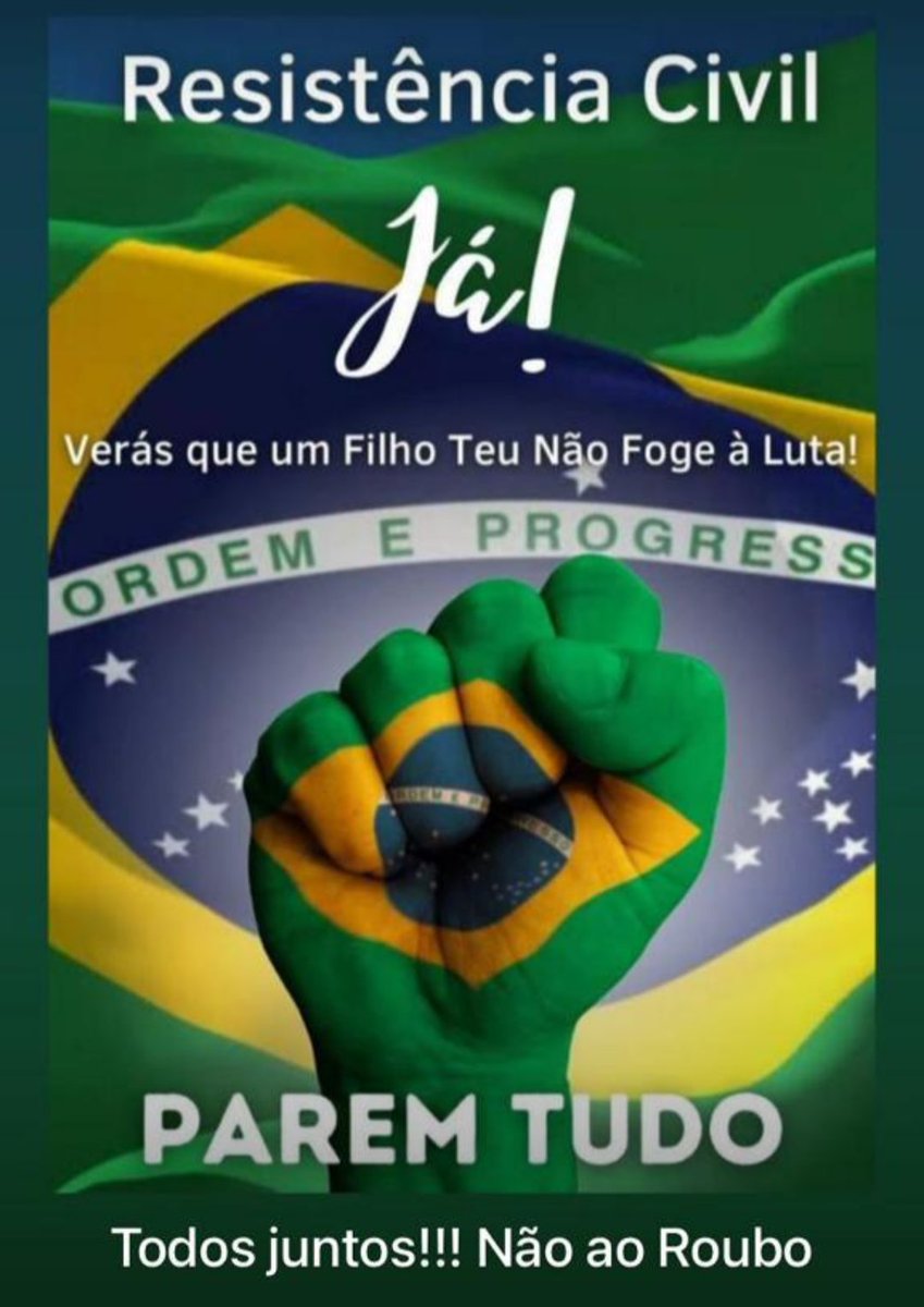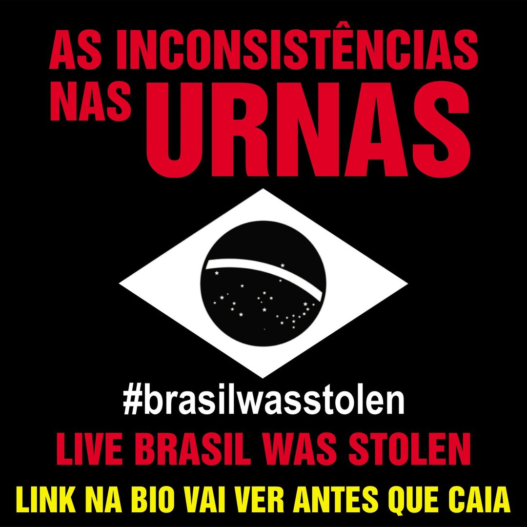 No dia 4 de novembro de 2022, a extrema-direita intensificou sua ofensiva contra o processo eleitoral brasileiro com a transmissão da live “Brasil was Stolen”, conduzida pelo consultor político argentino Fernando Cerimedo, por meio do canal La Derecha Diario. O vídeo alcançou um pico de 415 mil espectadores simultâneos e buscou legitimar a narrativa de fraude nas eleições, apresentando dados manipulados sobre o funcionamento das urnas eletrônicas. Investigação da Polícia Federal apontou que a ação foi articulada com o chamado “Núcleo de Desinformação” vinculado ao grupo investigado por tentativa de golpe, com envolvimento de militares e apoio indireto de Eduardo Bolsonaro, que havia se reunido com Cerimedo semanas antes. A live fazia parte de um esforço coordenado para fomentar convulsão social e justificar uma intervenção militar, ancorada em desinformação e no uso massivo da hashtag #BrazilWasStolen nas redes sociais. Foi criada uma conta no Instagram dedicada com esse nome, dedicada à mobilização em torno do discurso de fraude. Em seguida, essa hashtag foi amplamente adotada em cartazes nas manifestações nas ruas e marcou a narrativa desinformativa da fraude eleitoral.